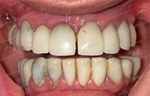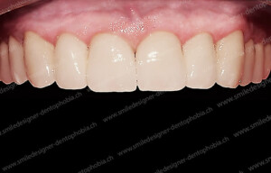 Les images que vous voyez présentent le résultat après 6 à 12 mois de cicatrisation. À ce stade, les bridges résilients provisoires, avec un cosmétique en composite, sont remplacés par vos bridges définitifs implanto-portés, avec un cosmétique en céramique.