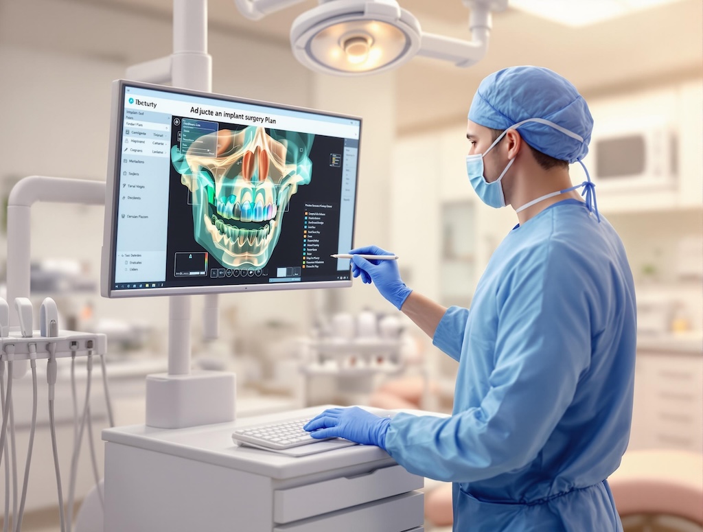 La planification implantaire réalisée à partir du scanner CBCT du patient permet de fabriquer un « guide implantaire » utilisé en per-opératoire ou même une planification de la « navigation chirurgicale » per-opératoire.