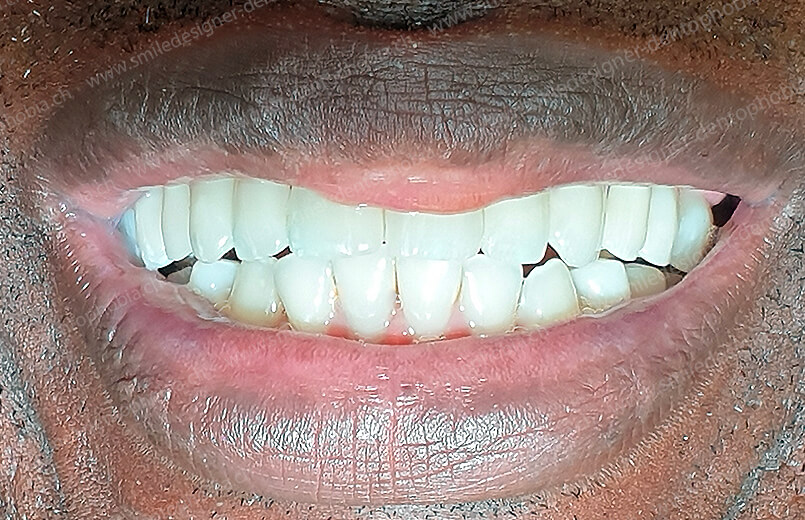 Même cas clinique « GOLD STANDARD MCI » terminé : Bridge implanto-porté sans extension (ALL ON 8). Version définitive des bridges avec un cosmétique en céramique (ALL ON 8/8).