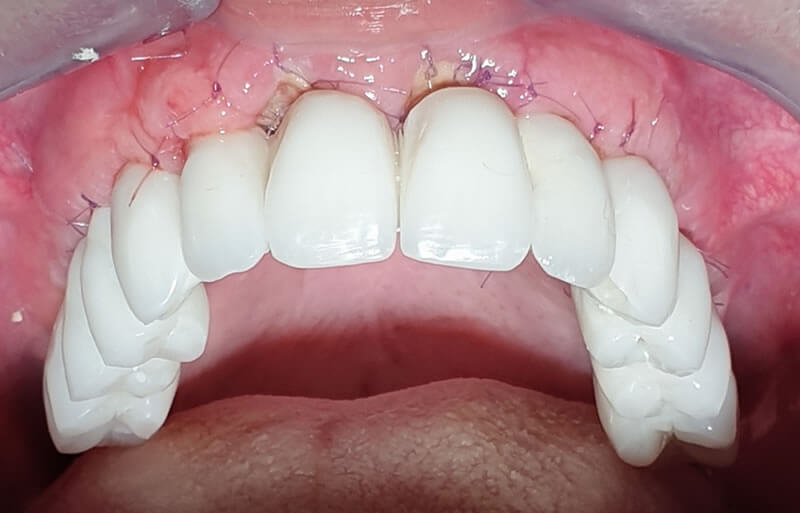 - Après 6 à 12 mois de cicatrisation, le bridge provisoire est remplacé par une version définitive en céramique, plus résistante, esthétique et biocompatible.