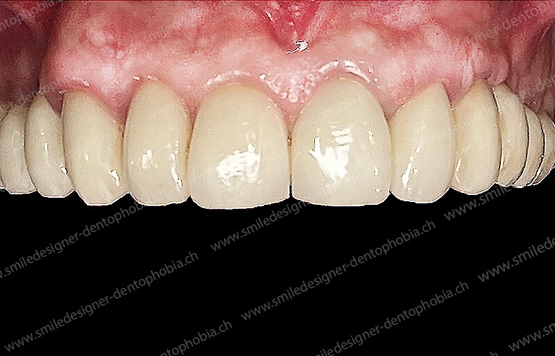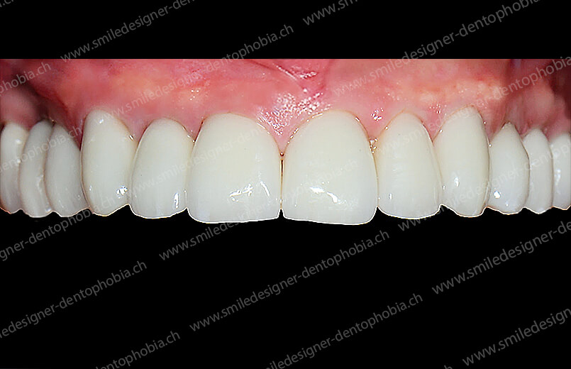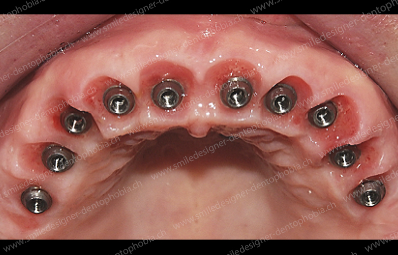Cas clinique « GOLD STANDARD MCI » maxillaire : Bridge implanto-porté sans extension (ALL ON 10). Version définitive des bridges avec un cosmétique en céramique.