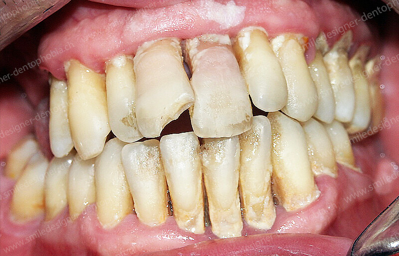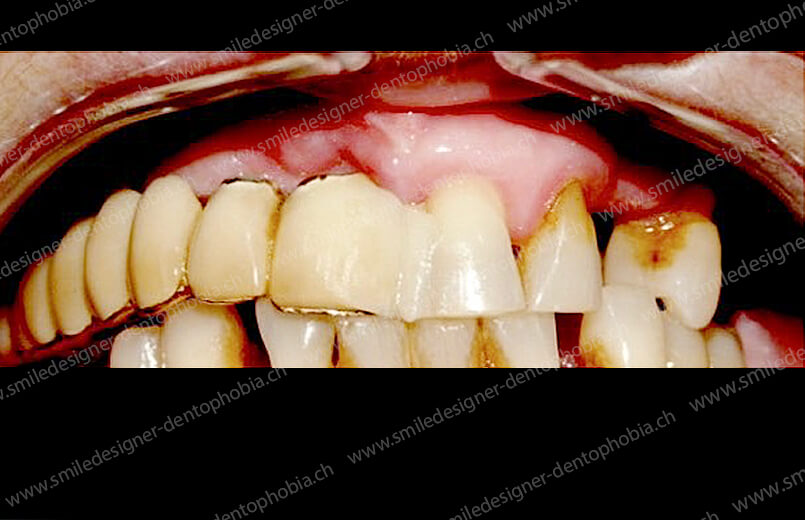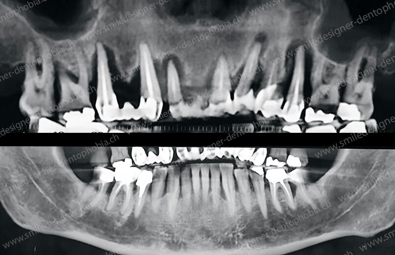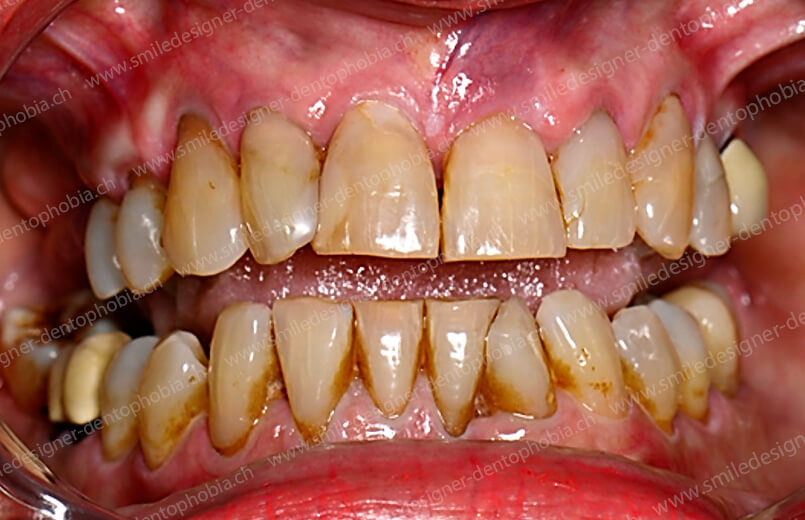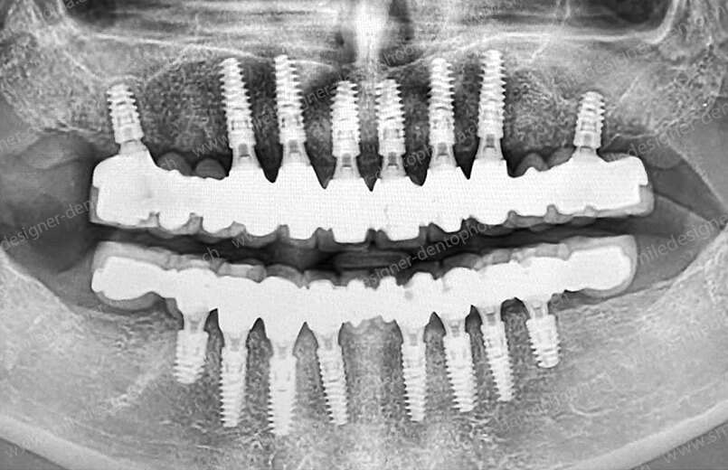 Cas clinique « GOLD STANDARD MCI » bi-maxillaire : Bridge implanto-porté sans extension (ALL ON 8) au maxillaire et à la mandibule. Version définitive des bridges avec un cosmétique en céramique.