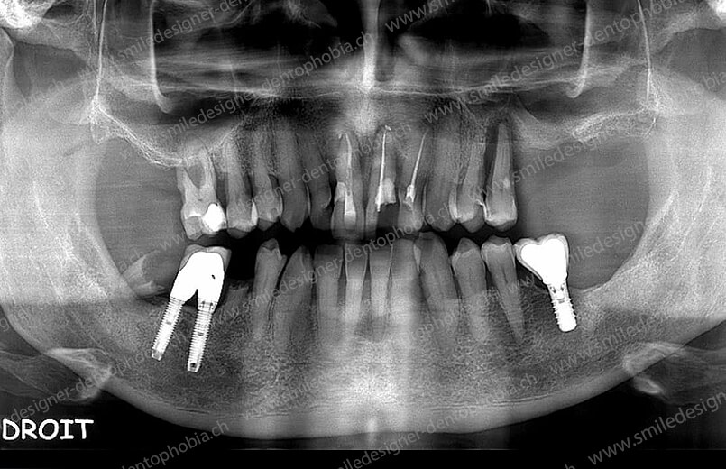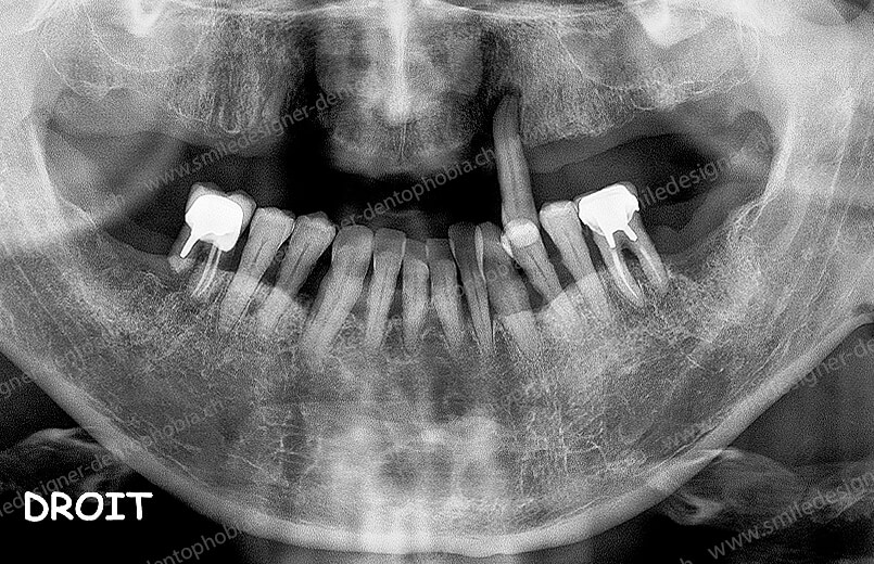 - Dents manquantes ou condamnées en raison de pathologies (parodontite, kystes, etc.).