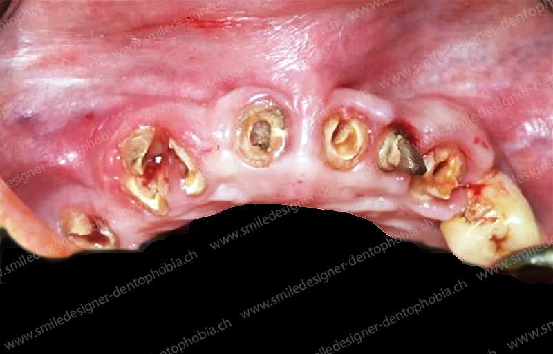 - Les dents devront être extraites au moment de l’intervention de pose des implants afin d’éviter toute résorption osseuse désastreuse préalables.