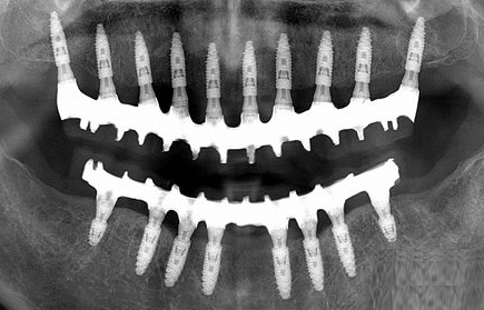 Les micro-mouvements sont mortifères pour l’ostéo-intégration des implants. En revanche, une armature métallique qui immobilise les implants va optimiser leur cicatrisation dans l’os. C’est le squelette (armature) du bridge implanto-porté installé immédiatement ou quelques jours après, la pose des implants qui réalise cette contention rigide.