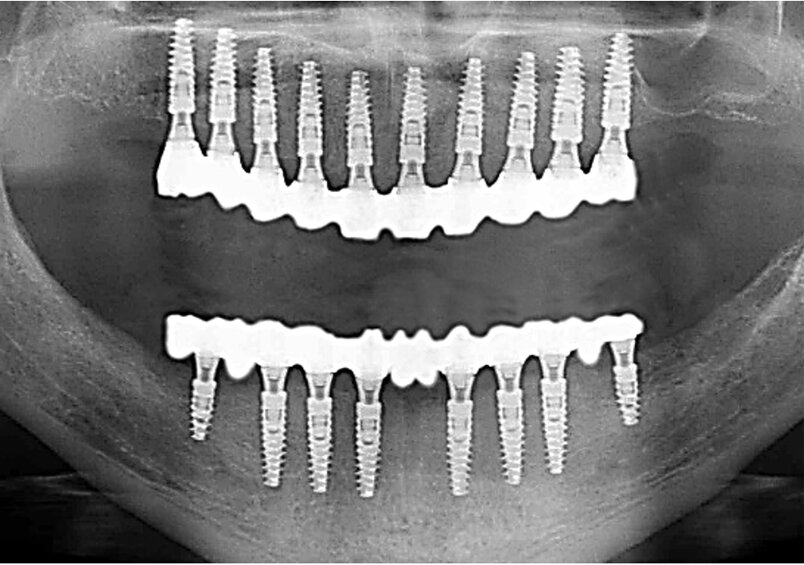 DEUX BRIDGES IMPLANTO-PORTÉS "ALL ON 10/8" SANS EXTENsION