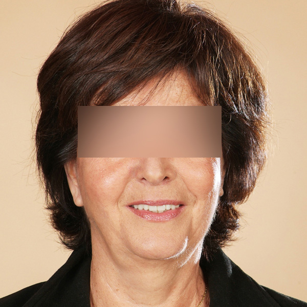 La première série de photographies avant et après traitement montre une différence énorme entre les deux expressions du visage : la photographie de droite a été prise après la fin du traitement et la pose de deux bridges complets sur les deux arcades dentaires (supérieure et inférieure). La photo de gauche est l’expression de la patiente à son arrivée au cabinet.