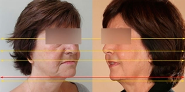 La conséquence de ces défauts est l’affaissement de la partie inférieure du visage et donc des tissus mous de la face.