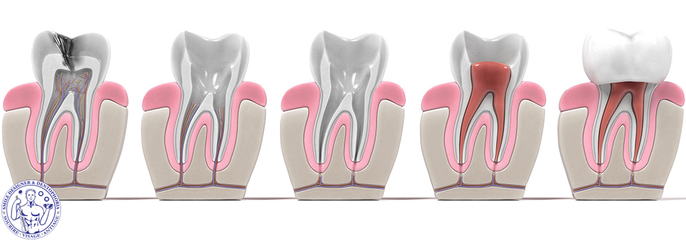 Afin de poser une couronne dentaire, il est nécessaire de procéder à la dévitalisation de la dent. Ce processus se déroule en plusieurs étapes :