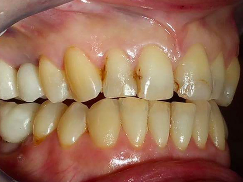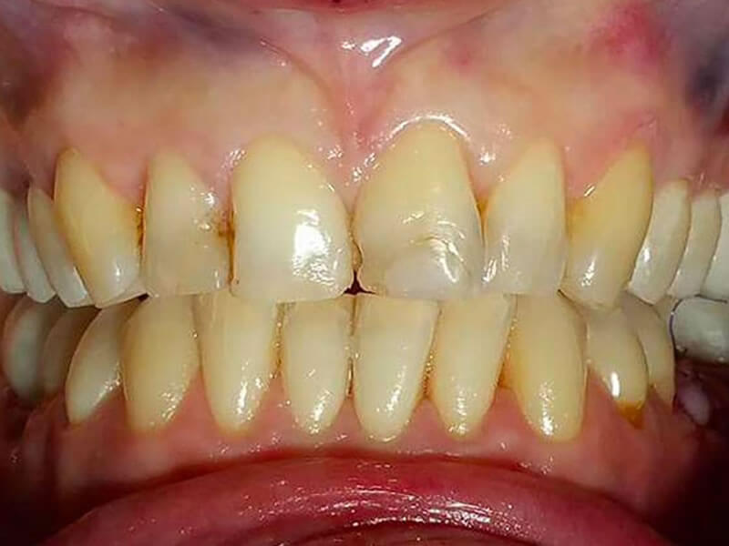 Le bruxisme a généré une usure des dents précoce et donc un rapprochement des mâchoires, accélérant le processus visuel de vieillissement de son visage.
