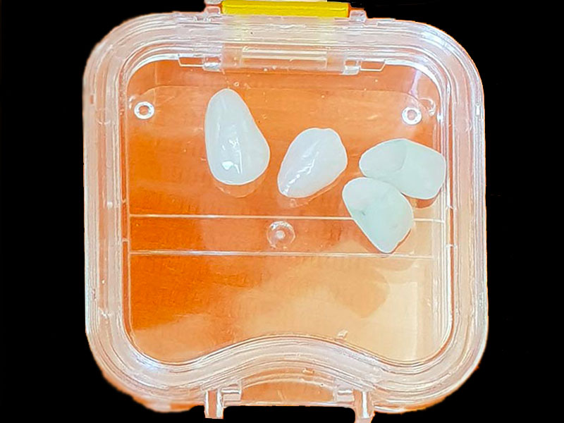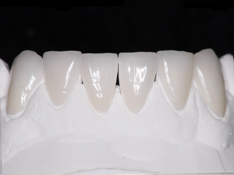 Voici ici, l’illustration de fabrication de facettes céramiques dentaires sur mesure, dans des cas complexes réalisées par des maîtres céramistes.