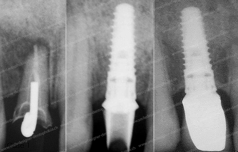 Si le cas est favorable c’est-à-dire que la corticale osseuse n’est pas trop détruite il est possible de poser un implant dentaire avec une mise en charge immédiate par une couronne provisoire qui réalise également une mise en esthétique immédiate.