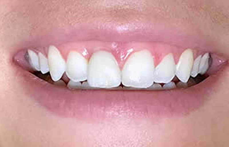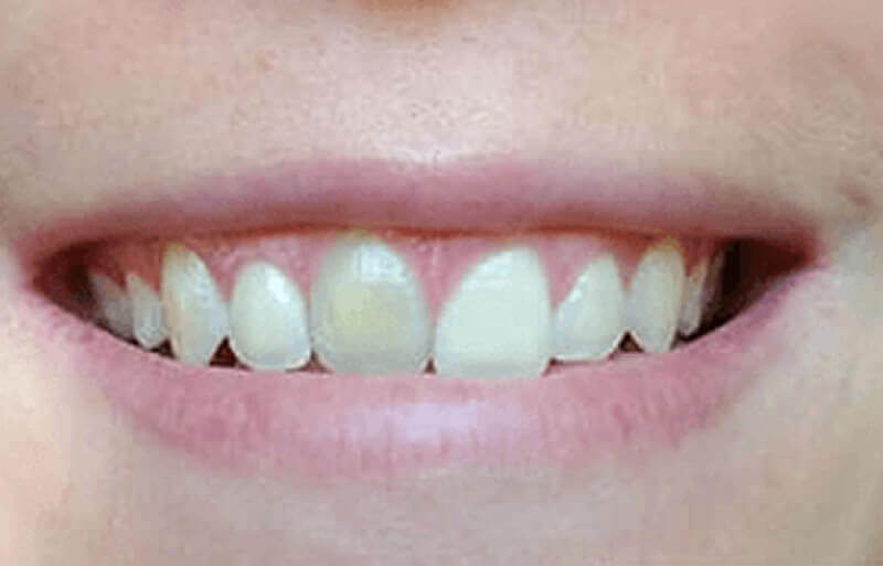 Dans ces images de résultat clinique : remplacement d’une incisive centrale suite à une chaux frontal.